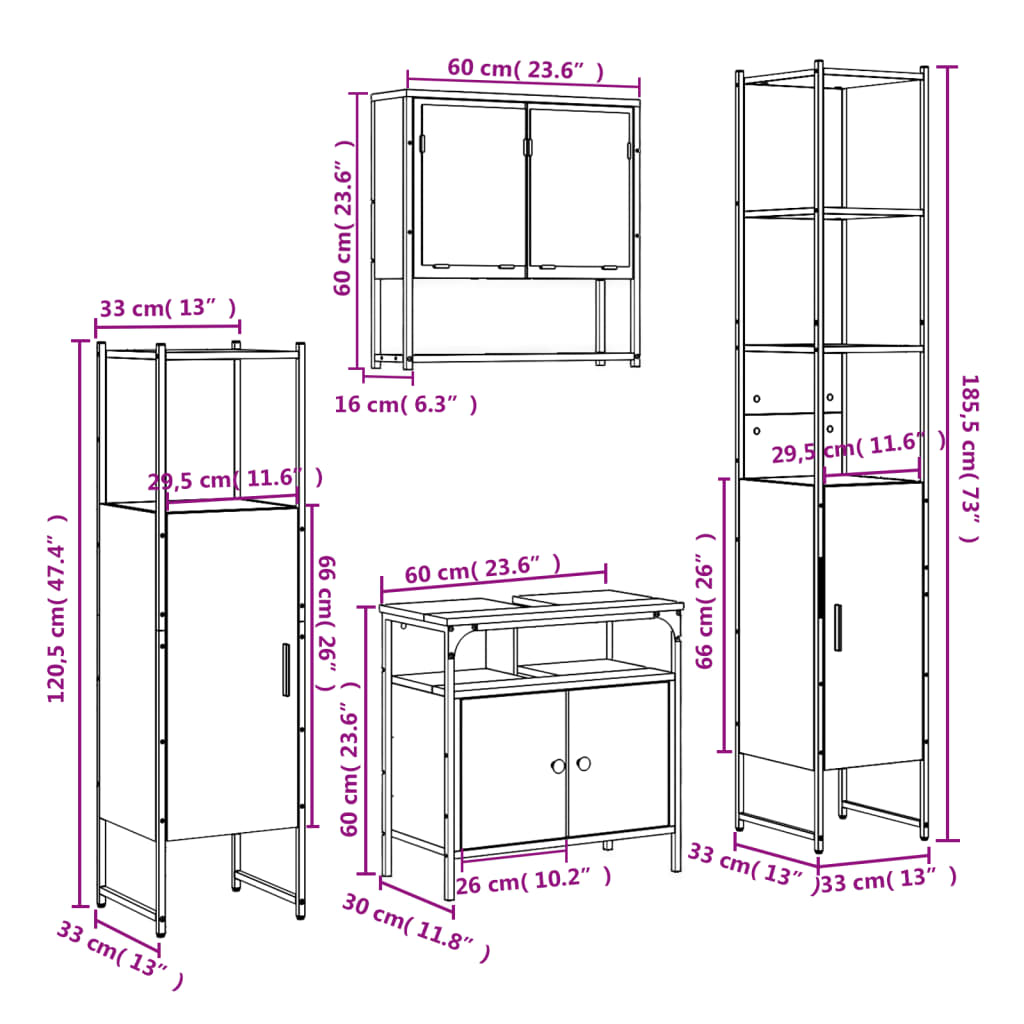 vidaXL 4-delige Badkamermeubelset bewerkt hout bruin eikenkleur