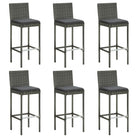 vidaXL Barkrukken 6 st met kussens poly rattan zwart