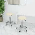 De keukenstoel is bekleed met eenvoudig te reinigen kunstleer voor optimaal comfort. Het stalen frame zorgt voor een hoge stevigheid en stabiliteit. Dankzij het gasveermechanisme is deze draaibare eetkamerstoel in hoogte verstelbaar en is hij een perfecte aanvulling op elke bar of eethoek. De rolwieltjes kunnen 360 graden draaien waardoor je de stoel eenvoudig kunt verplaatsen.