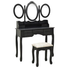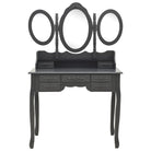 vidaXL Kaptafel met kruk en drievoudige spiegel grijs