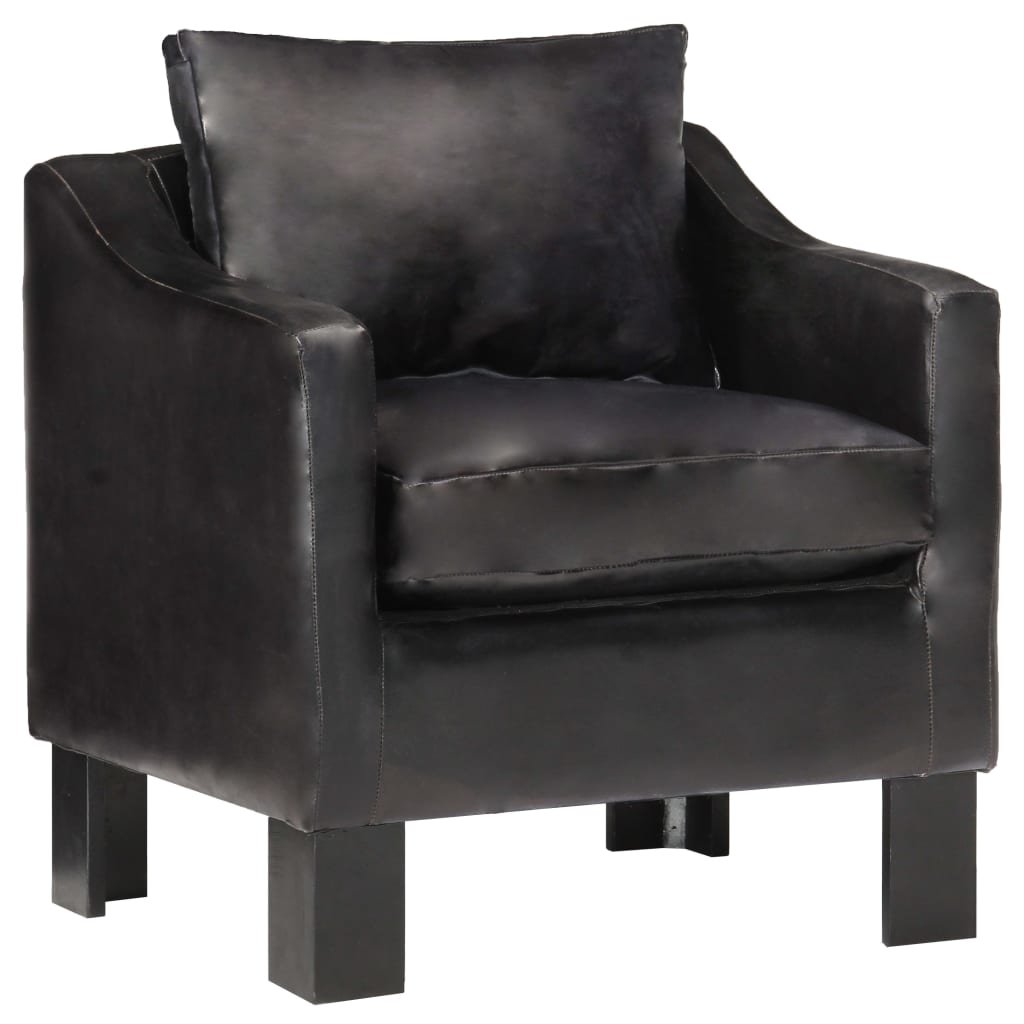De stoel is bekleed met zacht, echt geitenleer. Hij is dik gevoerd voor comfort. De massief mangohouten poten zijn zeer stevig en duurzaam. De armstoel is eenvoudig te monteren.