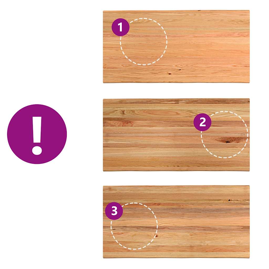 - Noesten en kleine gebreken zijn opgevuld met zwart vulmateriaal om een mooi en glad tafeloppervlak te geven. Raadpleeg de afbeeldingen voor voorbeelden.