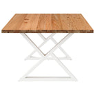 - Het tafelblad heeft een dikte van 4 cm langs de randen voor een robuuste uitstraling en een dikte van 2 cm in het midden om het houtverbruik en het totale gewicht te verminderen.