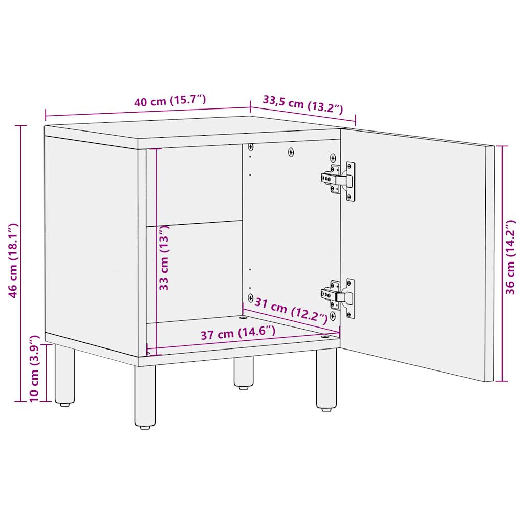 vidaXL Nachtkastje 40x33,5x46 cm massief ruw mangohout zwart