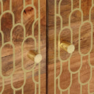 - Materiaal: massief mangohout met honingbruine afwerking, bewerkt hout, metaal