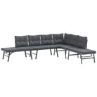 • Verstelbare zijzitting: het kleine zijpaneel van de zitting van elke bank kan omhoog worden geklapt, waardoor de bank een comfortabel ligbed wordt om in te ontspannen. De verstelbare zitting kan worden ingesteld op 3 verschillende niveaus om te voldoen aan je behoeften om te lezen, te zonnebaden of te dutten.