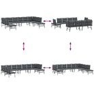 vidaXL 7-delige Tuinbankenset met kussens gepoedercoat staal zwart