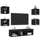 vidaXL 7-delige tv-wandmeubelset met LED bewerkt hout zwart