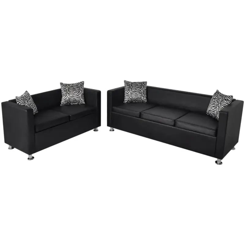 Dit bankstel bestaat uit een tweezits- en een driezitsbank van hoogwaardig kunstleer. De banken zijn erg comfortabel, en het strakke, moderne ontwerp geeft je interieur een stijlvol tintje. Deze bankenset neemt weinig ruimte in beslag en de strakke, simpele lijnen passen bij iedere inrichting, of het nu klassiek of modern is. De banken hebben een breed zitgedeelte en dik gevoerde kussens voor het ultieme zitcomfort.