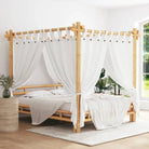 - Gordijnen rondom: deze bedbodem met gordijnen heeft een klassiek ontwerp met 4 openingen voor gemakkelijke toegang, die ook vliegen, muggen en andere insecten uit de buurt houdt. Bovendien beschermen de gordijnen je tegen fel licht en zorgen ze voor een goede nachtrust.