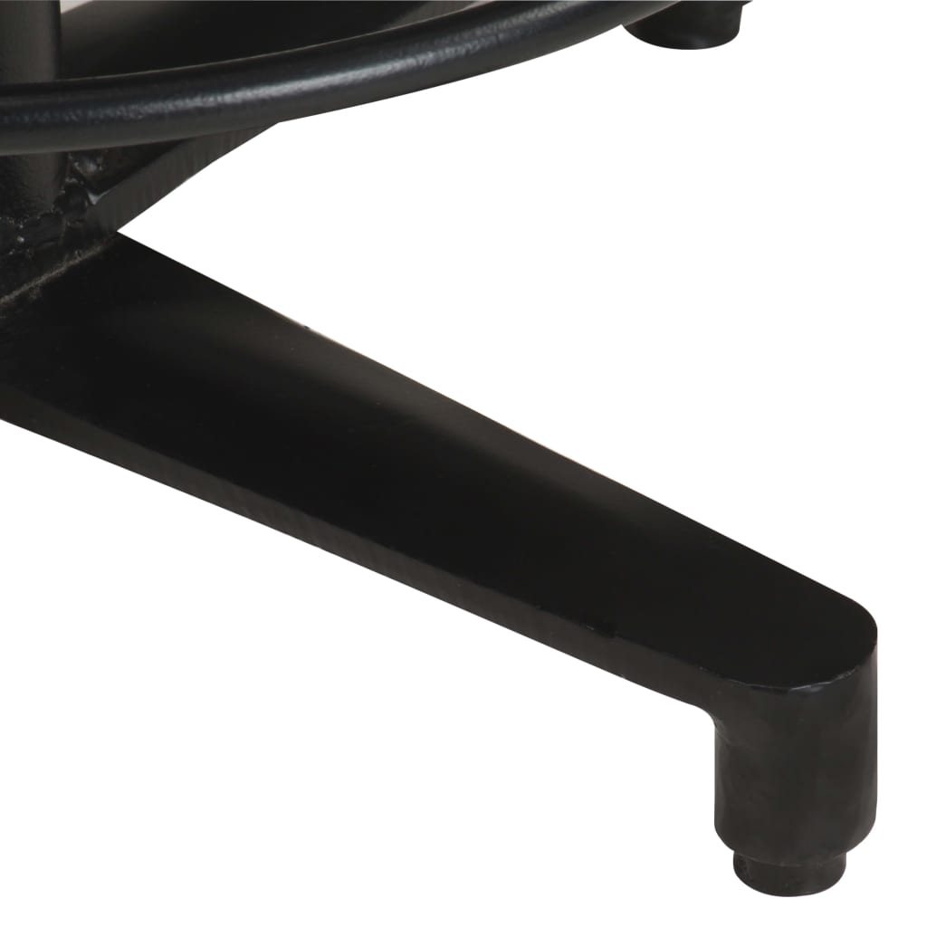 Massief mangohout is een tropisch hardhout. Het heeft de kracht om veel gewicht te dragen en is goed bestand tegen slijtage. Bovendien maken het voortreffelijke vakmanschap en de prachtige houtnerven elke kruk net iets anders dan de rest. De gepoedercoat ijzeren basis draagt bij aan de stabiliteit. De zitkrukken hebben ingebouwde voetensteunen voor extra zitcomfort.