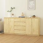 Deze nachtkastjes zijn gemaakt van massief grenenhout, waardoor ze stevig en duurzaam zijn. De set bestaat uit 2 kasten met 2 deuren en 3 vakken en 1 kast met 4 lades. Ze bieden voldoende opbergruimte om je verschillende items overzichtelijk en binnen handbereik te houden. Het stevige blad is ook ideaal voor het uitstallen van decoratieve objecten, fotolijsten of potplanten. De nachtkastjes zijn eenvoudig schoon te maken met een vochtige doek.