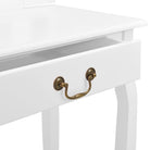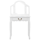 Deze opmaaktafel, met ovale spiegel en krukje, is een echte blikvanger voor iedere slaapkamer. De lade biedt voldoende ruimte om cosmetische spullen die je dagelijks nodig hebt netjes op te bergen. Het krukje met dikke voering zorgt dat je comfortabel kunt zitten. Indien de kruk niet gebruikt wordt kan hij onder de tafel worden opgeborgen om ruimte te besparen. Deze tafel is duurzaam en gemakkelijk te onderhouden.