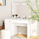 Deze kaptafel, gemaakt van MDF, heeft een strak en beknopt silhouet met een moderne stijl. Hij biedt voldoende ruimte voor make-upartikelen en houdt alles op zijn plaats. Kaptafelspiegel: de prachtige spiegel biedt duidelijk zicht om je make-up aan te brengen en voegt een vleugje elegantie toe aan de kaptafel. De afgebeelde elegante LED-lampen verlichten ook je schoonheid.
