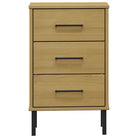 vidaXL Nachtkastje met metalen poten OSLO massief grenenhout bruin