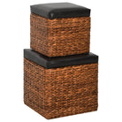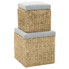De poefs, vervaardigd van zeegras, zullen een rustieke en natuurlijke charme aan je kamer geven. De set biedt veel ruimte voor het opbergen van talloze artikelen die je graag binnen bereik en toch netjes uit het zicht wilt hebben. De kussens dragen bij aan het zitcomfort van de set. De set is al gemonteerd; er is geen montage vereist.