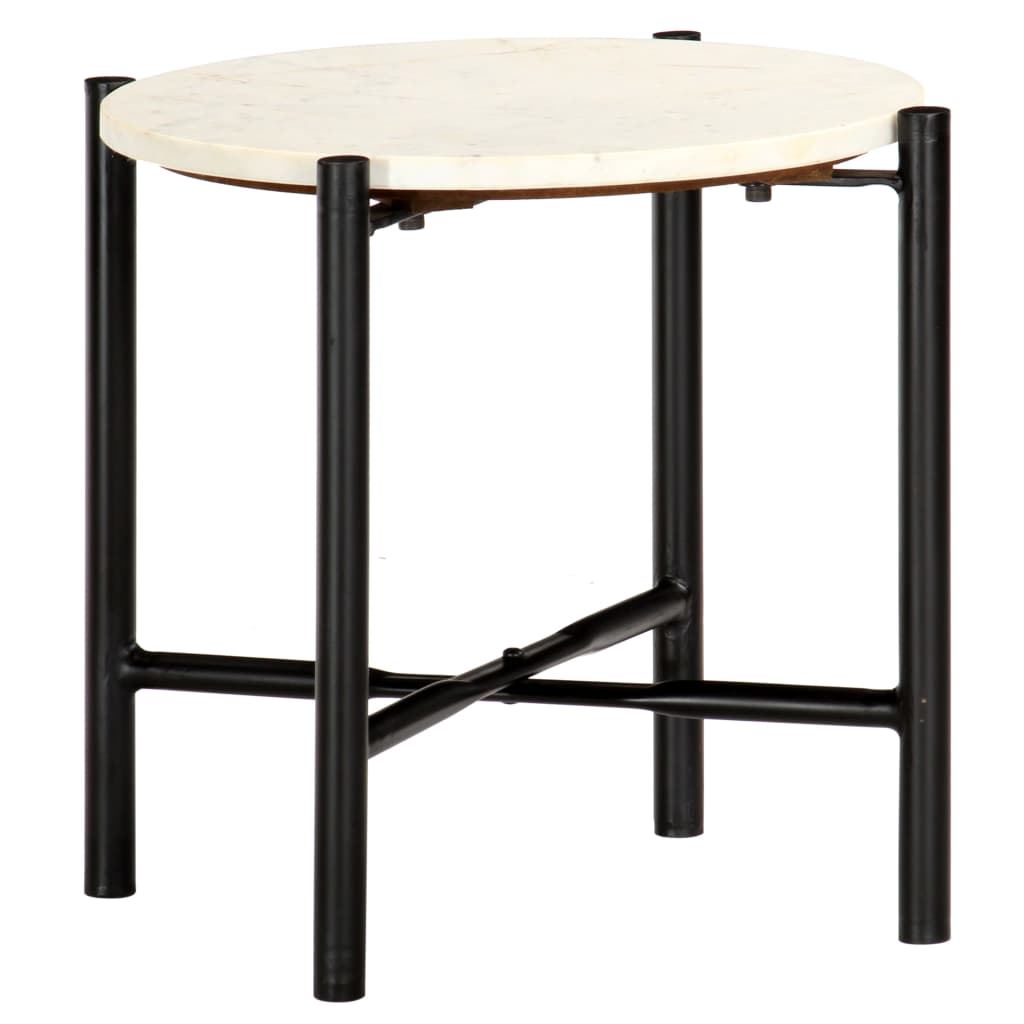 Dit tafeltje is gemaakt van echt steen met marmeren textuur en een sterk ijzeren frame met een gepoedercoate afwerking waardoor hij stabiel en duurzaam is. Het biedt een stabiel en veilig oppervlak voor het plaatsen van drankjes, vazen, fruitschalen en andere ornamenten. Deze bijzettafel is eenvoudig schoon te maken met een vochtige doek.