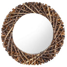 Het frame van de spiegel is met de hand gemaakt van natuurlijke teakhouten takken, wat bijdraagt aan de rustieke stijl van de spiegel. Hij staat geweldig in elke kamer van het huis en kan ook in de badkamer worden gebruikt. De spiegel is klaar om aan de muur te worden gemonteerd dankzij de reeds geïnstalleerde haak aan de achterkant.