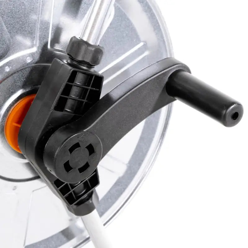- Grote flexibiliteit: de combinatie van een langere trekhendel en geïntegreerde wielen zorgt ervoor dat de haspel gemakkelijk door je tuin beweegt.