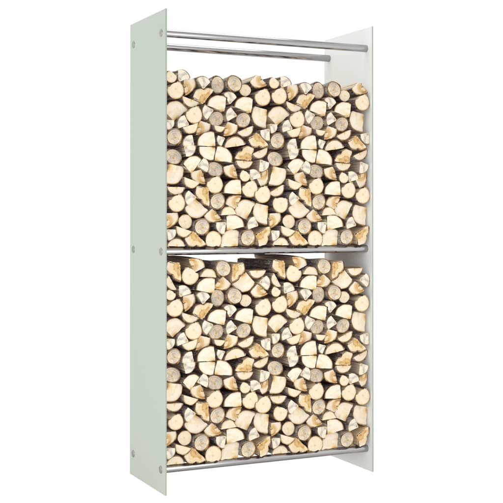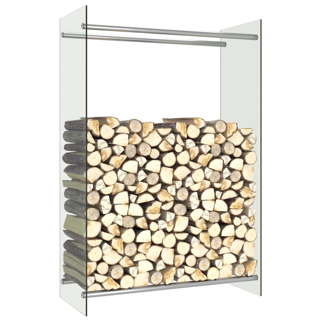 This wood rack is made of tempered glass and steel, making it incredibly sturdy and durable. It's a must-have for anyone with a fireplace or fire pit, keeping your firewood organized and accessible. This tall firewood rack holds enough logs to keep your fire going and stay warm in the winter.