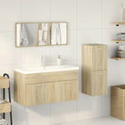 Badkamermeubelset met bewerkt hout voor een stijlvolle badkamer uitstraling