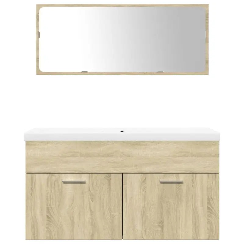 Badkamermeubelset van bewerkt hout met duurzame en vochtbestendige afwerking