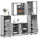 vidaXL 4-delige Badkamermeubelset bewerkt hout grijs sonoma eikenkleur
