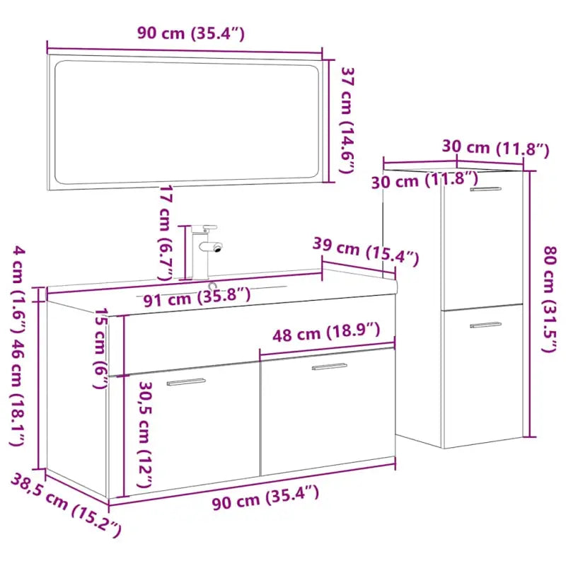 Badkamermeubelset van bewerkt hout in sonoma eiken materiaal