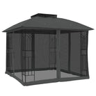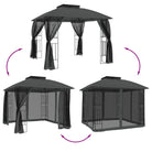 vidaXL Prieel met gaaswanden en dubbel dak 2,94x2,94 m staal antraciet