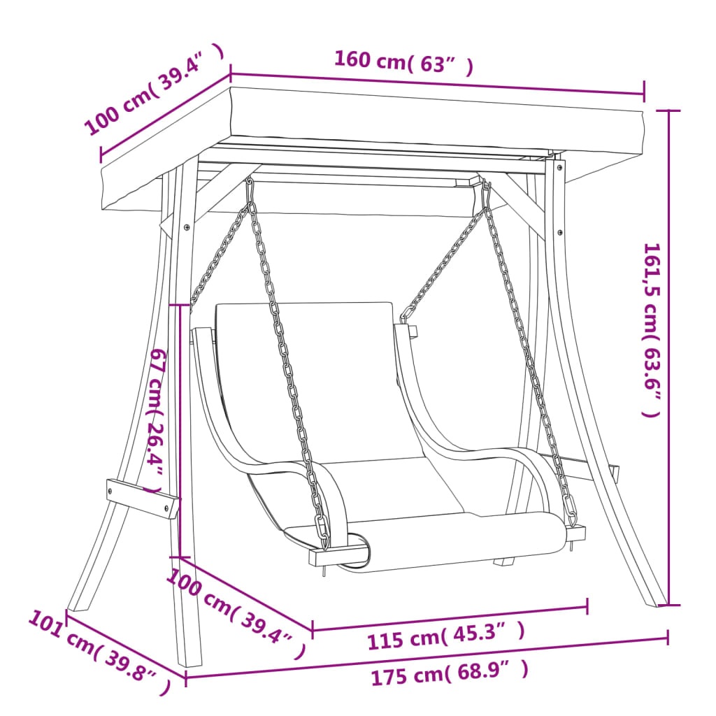 vidaXL Rocking chair with cushion and canopy solid pine wood