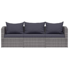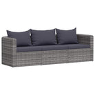 vidaXL 3-delige Loungeset met kussens poly rattan grijs