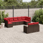vidaXL 9-delige Loungeset met kussens poly rattan grijs