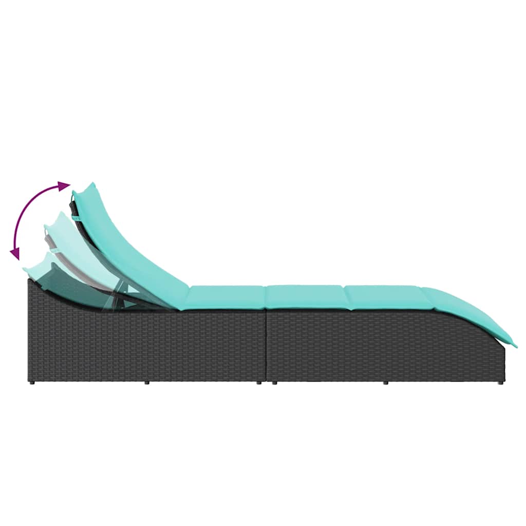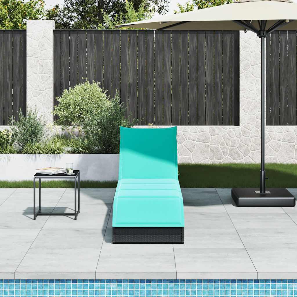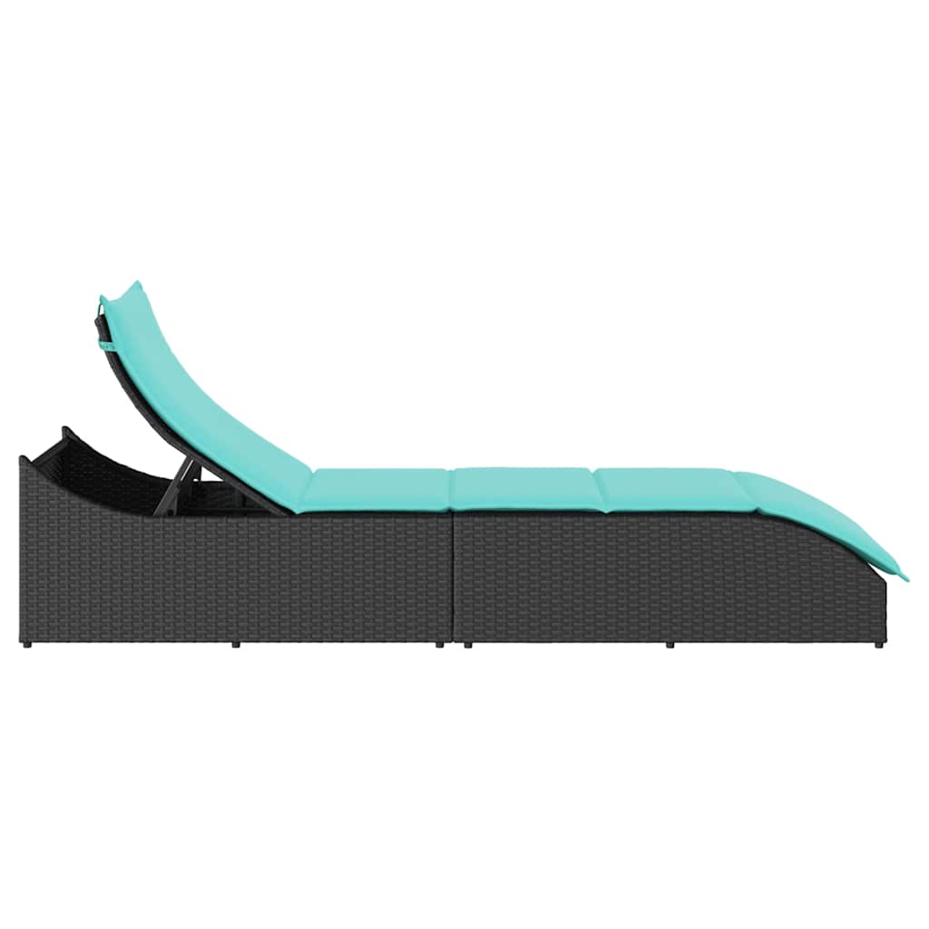 vidaXL Folding Lounger with Cushion Storage Space Poly Rattan Black