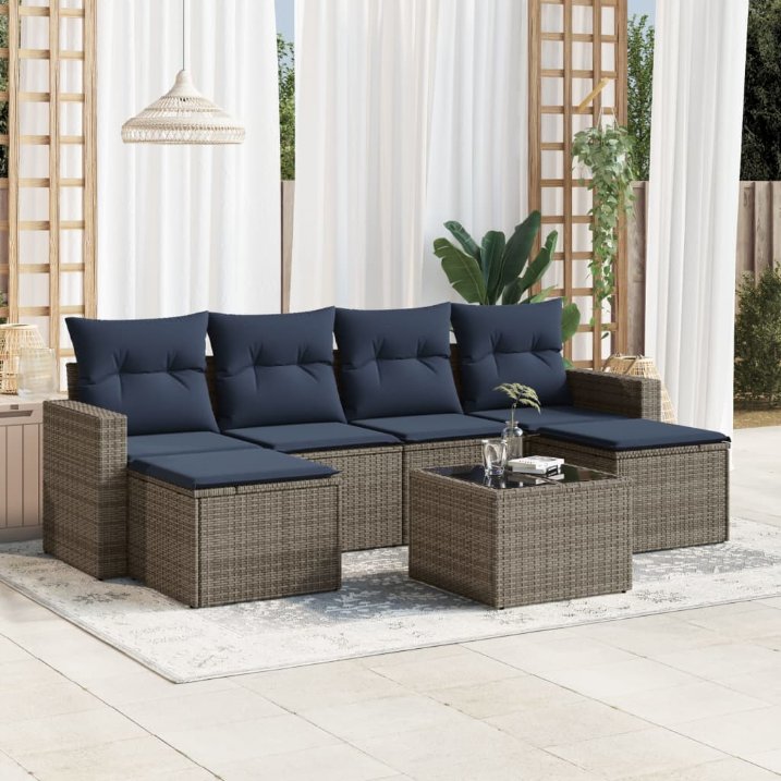 vidaXL 7-Piece Lounge Set with Cushions Poly Rattan Grey