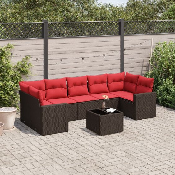 vidaXL 8-Piece Lounge Set with Cushions Poly Rattan Brown
