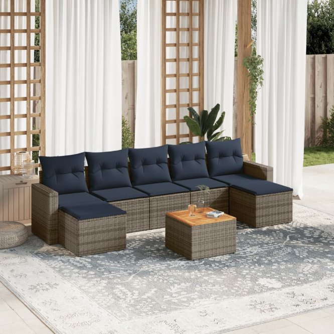 vidaXL 8-Piece Lounge Set with Cushions Poly Rattan Grey