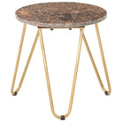 Dit tafeltje is gemaakt van echt steen met marmeren textuur en een sterk ijzeren frame met een gepoedercoate afwerking waardoor hij stabiel en duurzaam is. Het biedt een stabiel en veilig oppervlak voor het plaatsen van drankjes, vazen, fruitschalen en andere ornamenten. Deze bijzettafel is eenvoudig schoon te maken met een vochtige doek.