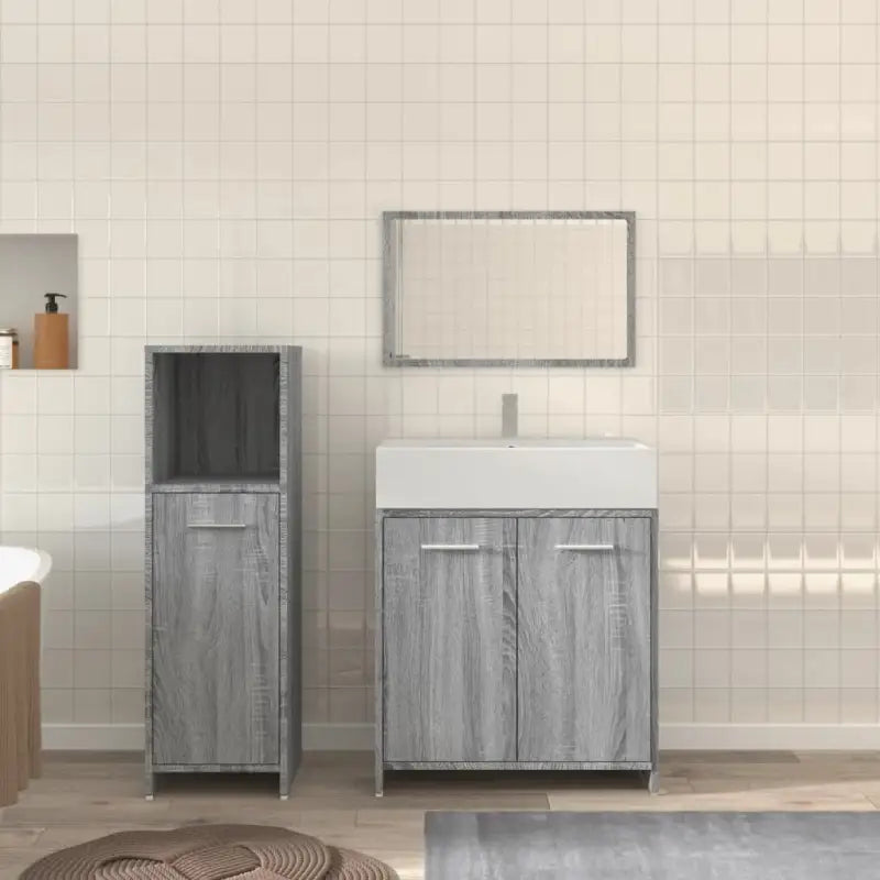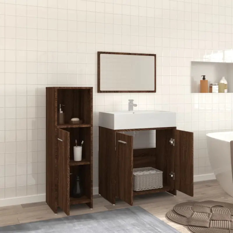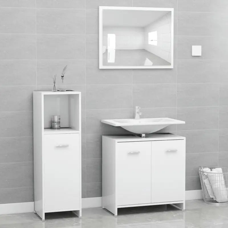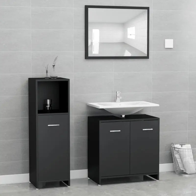 Deze 3-delige badkamermeubelset heeft veel opbergruimte en is een chique en tijdloze aanvulling op elke badkamer of wasruimte.