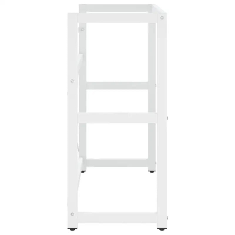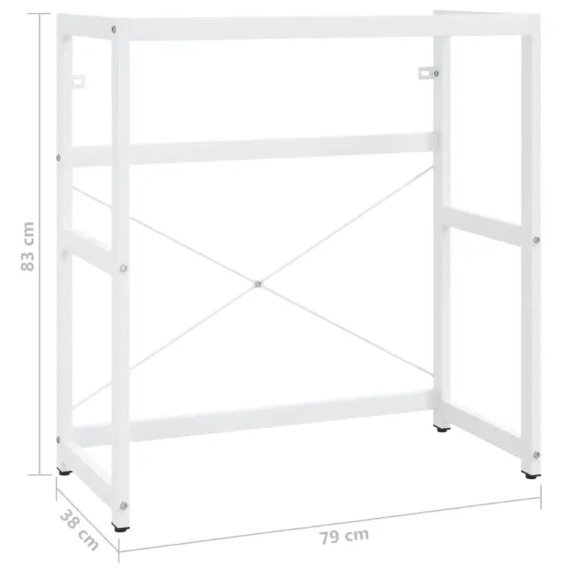De wastafelstandaard is gemaakt van gepoedercoat ijzer en is weerbestendig en duurzaam. Het frame biedt gemakkelijke toegang tot handdoeken en manden en creëert meer ruimte dan gesloten opbergers. Het badkamerframe is gemakkelijk schoon te maken met een vochtige doek.