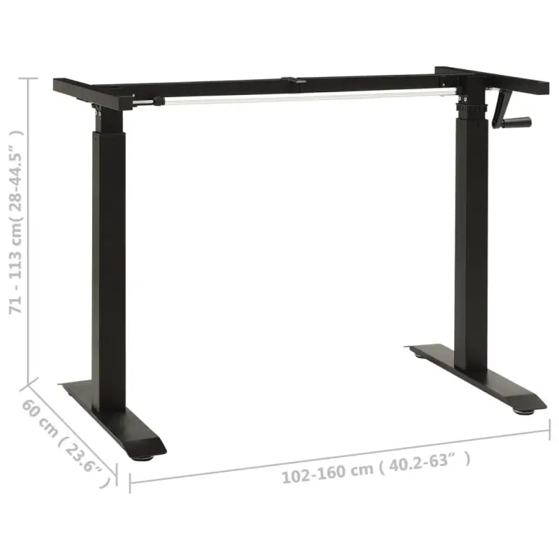 Dit bureauframe van gepoedercoat koolstofstaal is zeer stabiel. Het is in breedte verstelbaar tussen 102 en 160 cm en is in hoogte verstelbaar tussen 71 en 113 cm om aan specifieke behoeften te voldoen. Dit frame heeft een handslinger voor eenvoudige en snelle aanpassing. Het kan met je desktop worden gebruikt om perfect in je werkruimte te passen. Dit frame is geschikt voor een tafelblad met een breedte van 120 tot 180 cm en een diepte van 60 tot 80 cm.