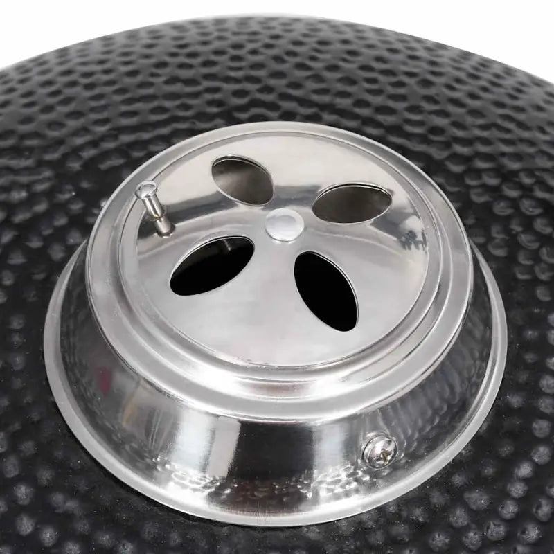 Deze keramische barbecue heeft een zeer stevige scharnierdeksel met een luchtopening en een thermometer aan de bovenkant. Dankzij de gelaagde opening kan je de luchtstroom en de temperatuur eenvoudig regelen.