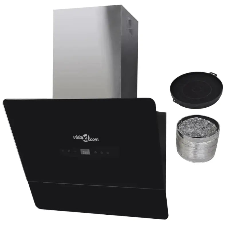 - Materiaal: gehard glazen paneel en roestvrijstalen schoorsteen