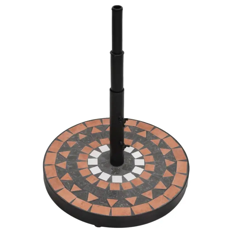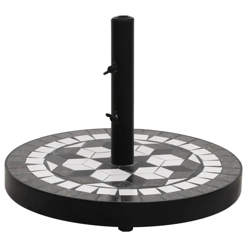 • Uniek patroon: het keramische tegelpatroon van de parasolvoet voegt een klassieke en trendy stijl toe aan je buitenruimte.