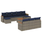 vidaXL 11-delige Loungeset met kussens poly rattan grijs