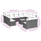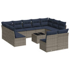 vidaXL 12-delige Loungeset met kussens poly rattan grijs