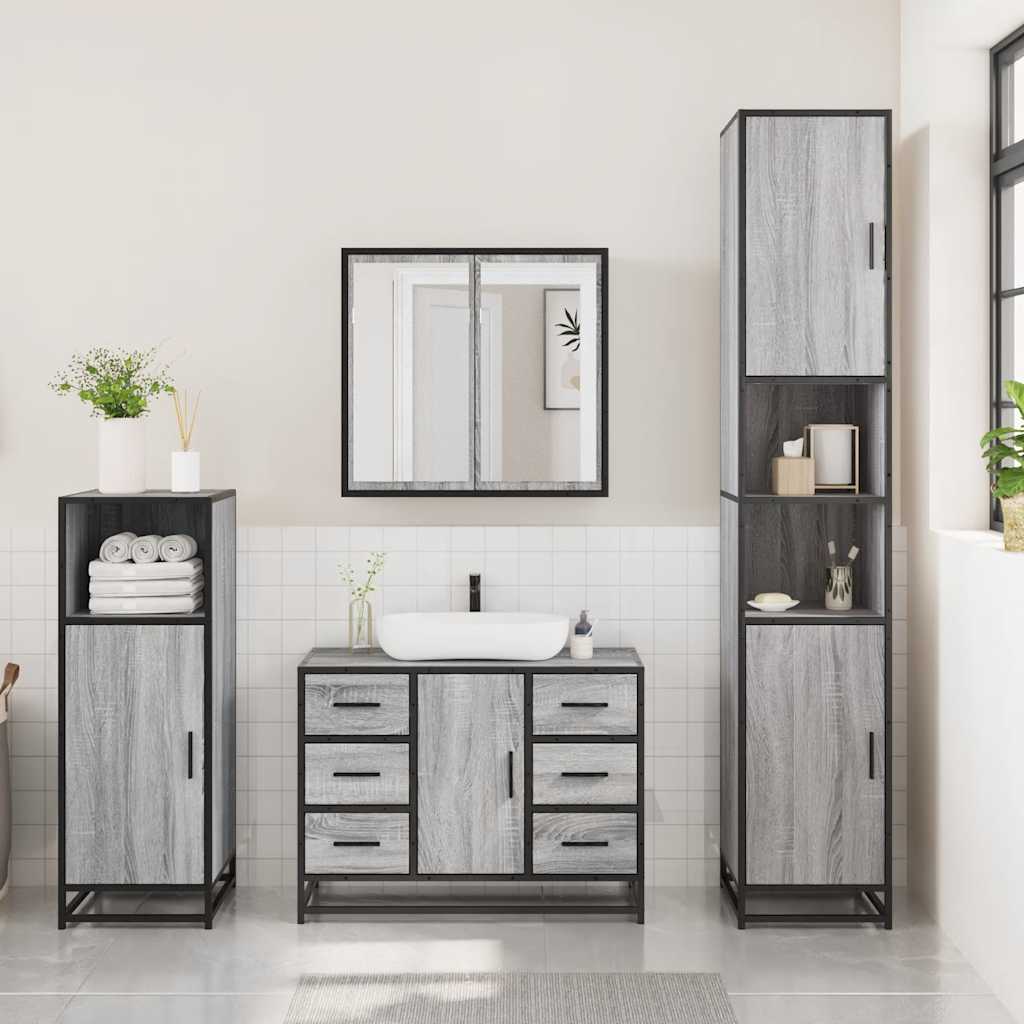 vidaXL 3-delige Badkamermeubelset bewerkt hout grijs sonoma eikenkleur