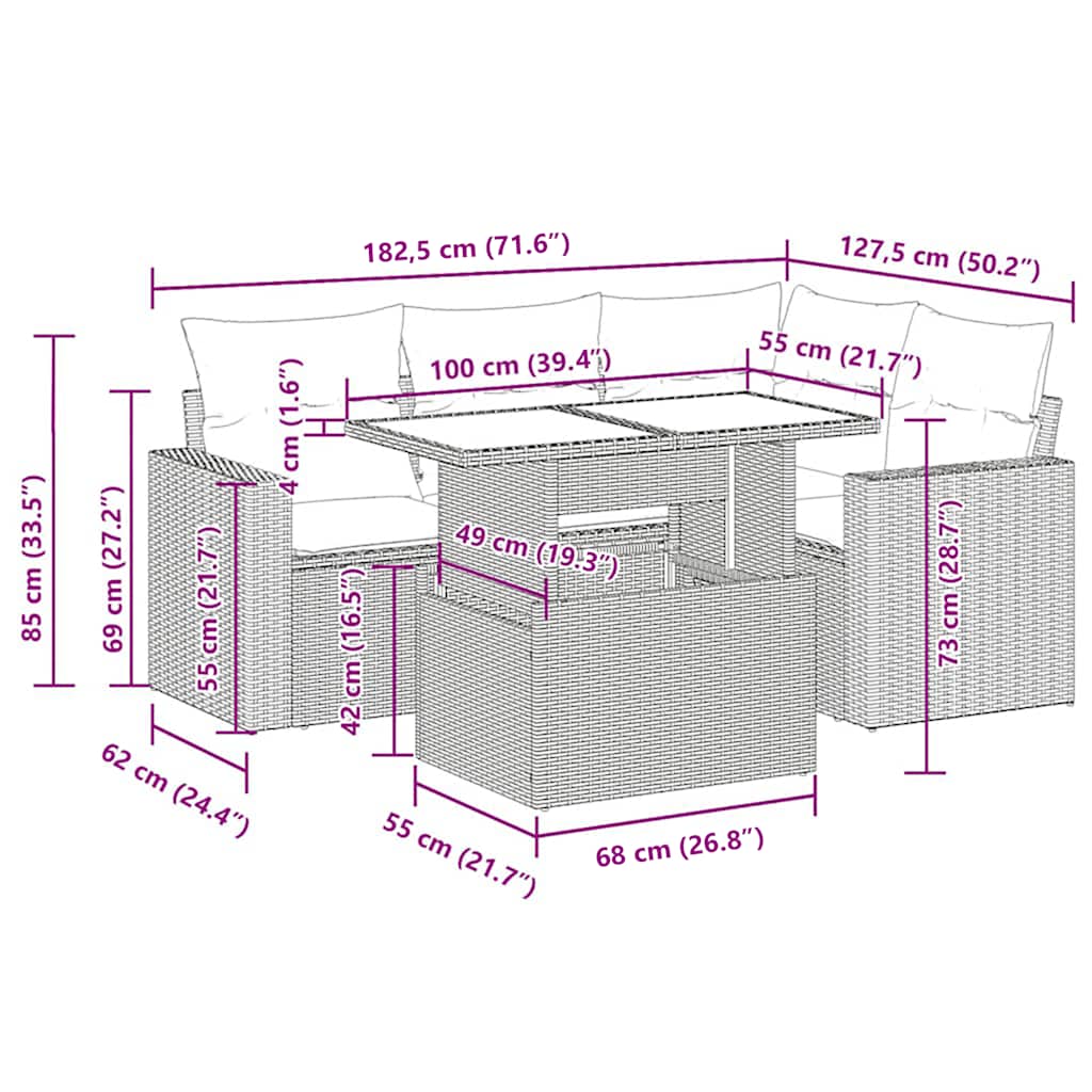 vidaXL 5-Piece Lounge Set with Cushions Poly Rattan Acacia Brown