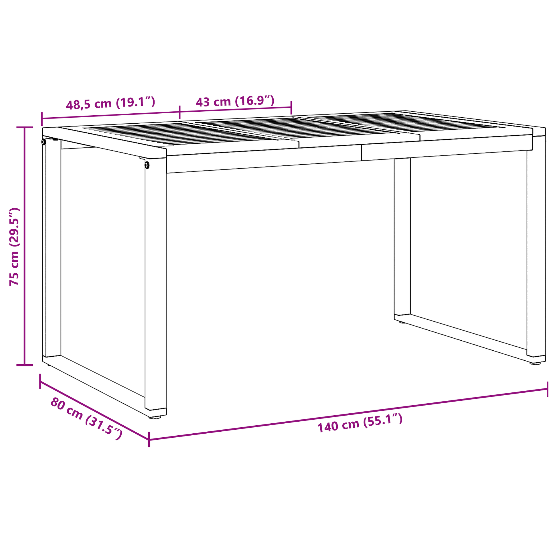 - Perfecte Grootte voor Bijeenkomsten: De rechthoekige tafel is 140 x 80 cm, wat genoeg ruimte biedt voor maaltijden, zodat je zonder moeite kunt entertainen. Ideaal voor kleine familiebijeenkomsten of ontspannen buiten diners.
