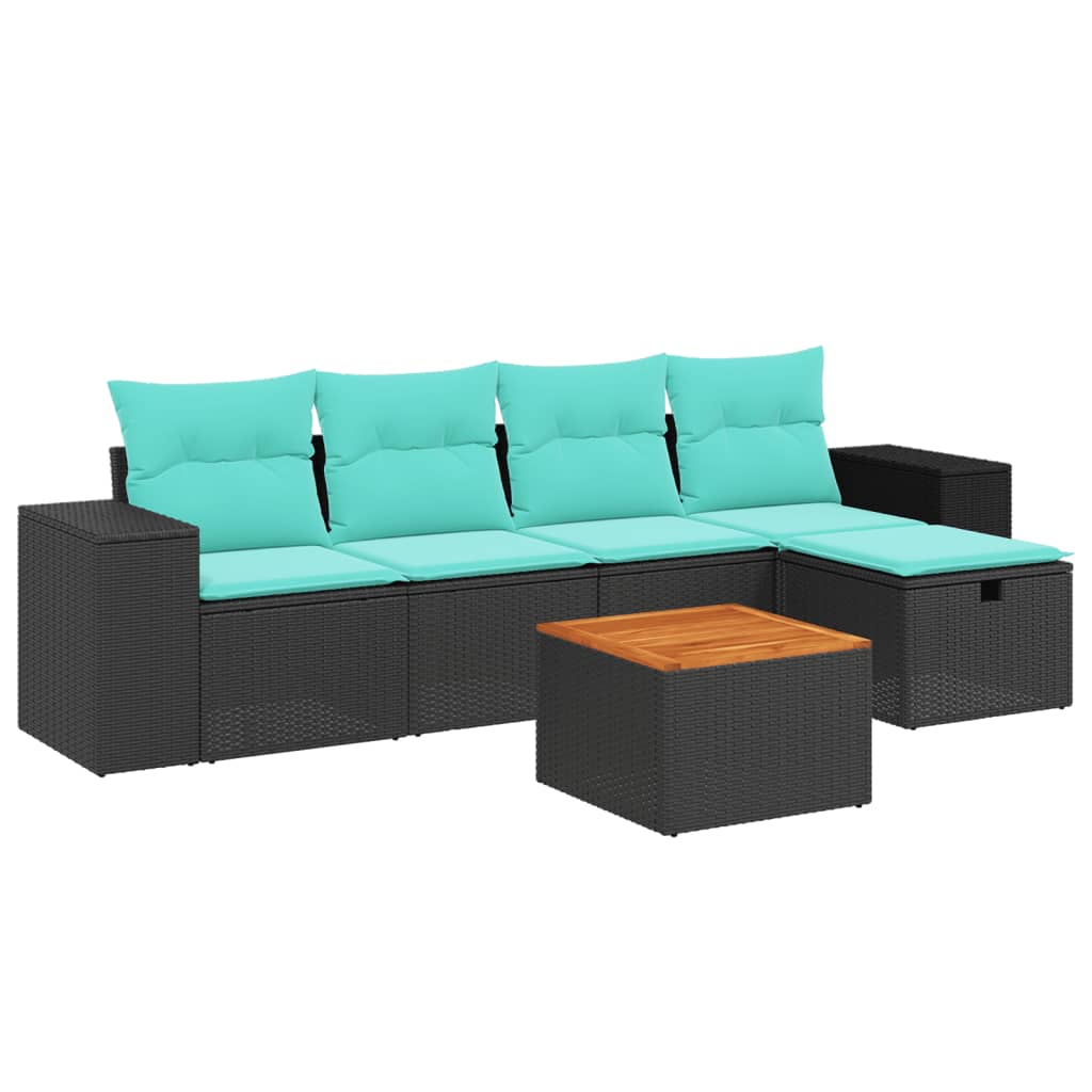 vidaXL 6-Piece Lounge Set with Cushions Poly Rattan Black