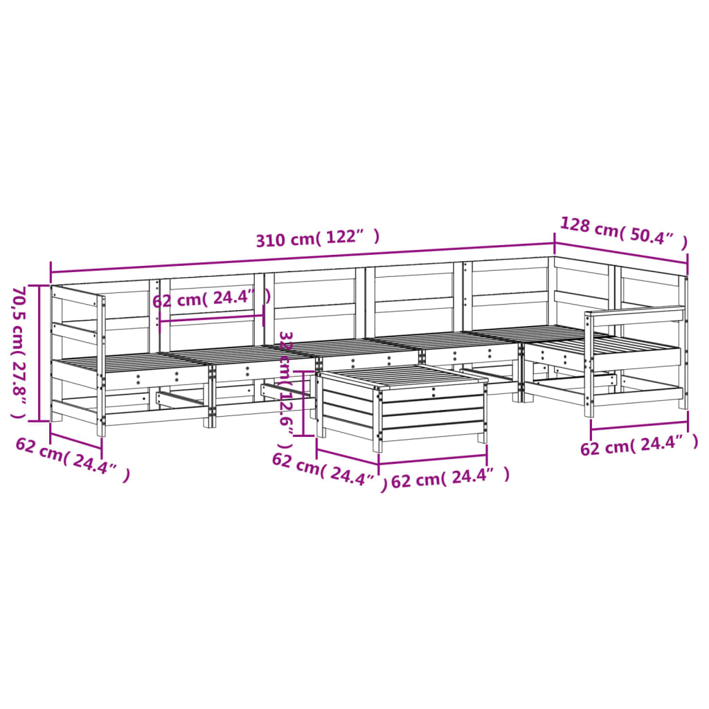vidaXL 7-Piece Lounge Set Impregnated Pinewood